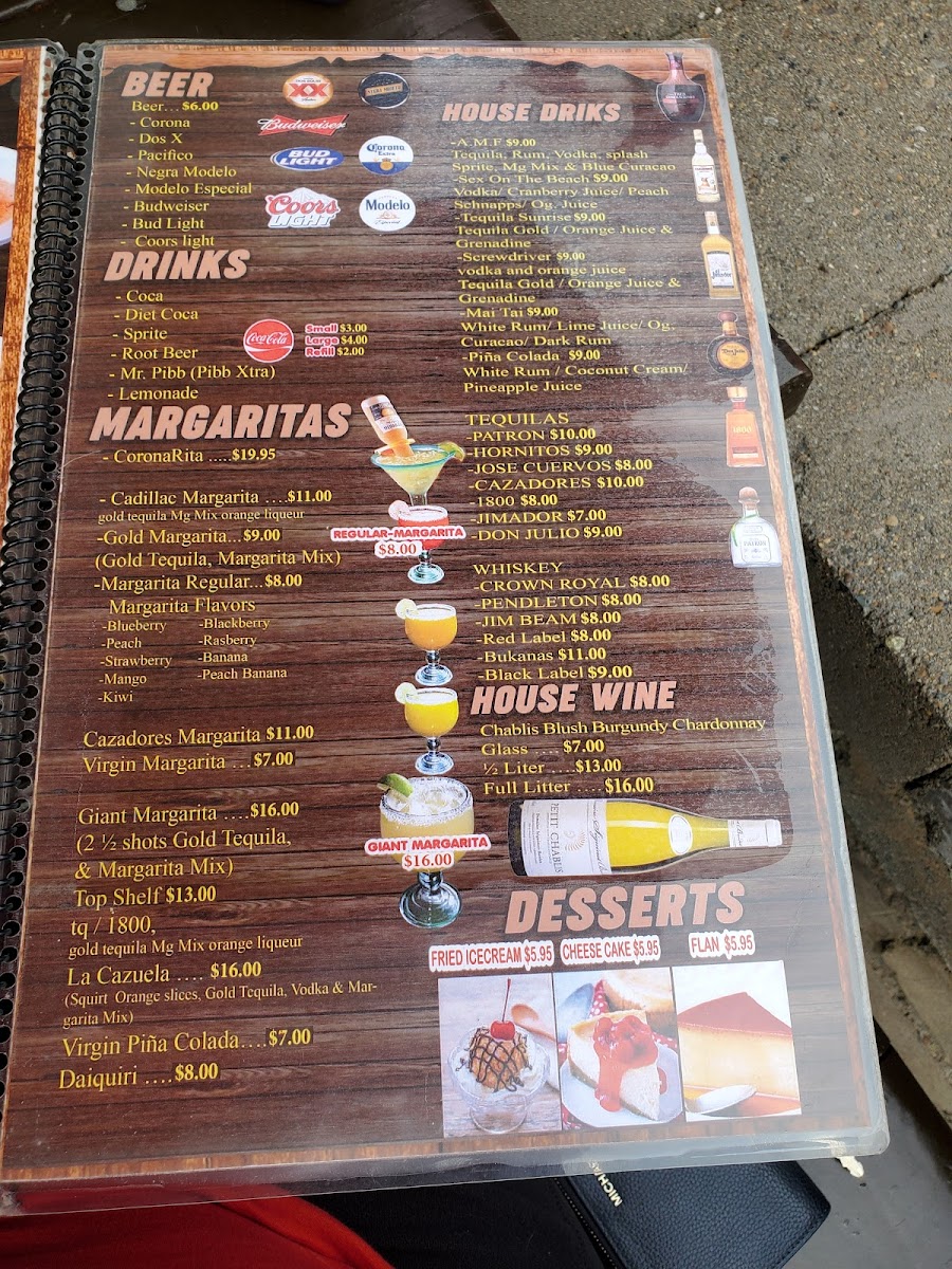 Refreshing agua fresca options include tamarind, rice drink, or hibiscus flower. Available in medium serving.
